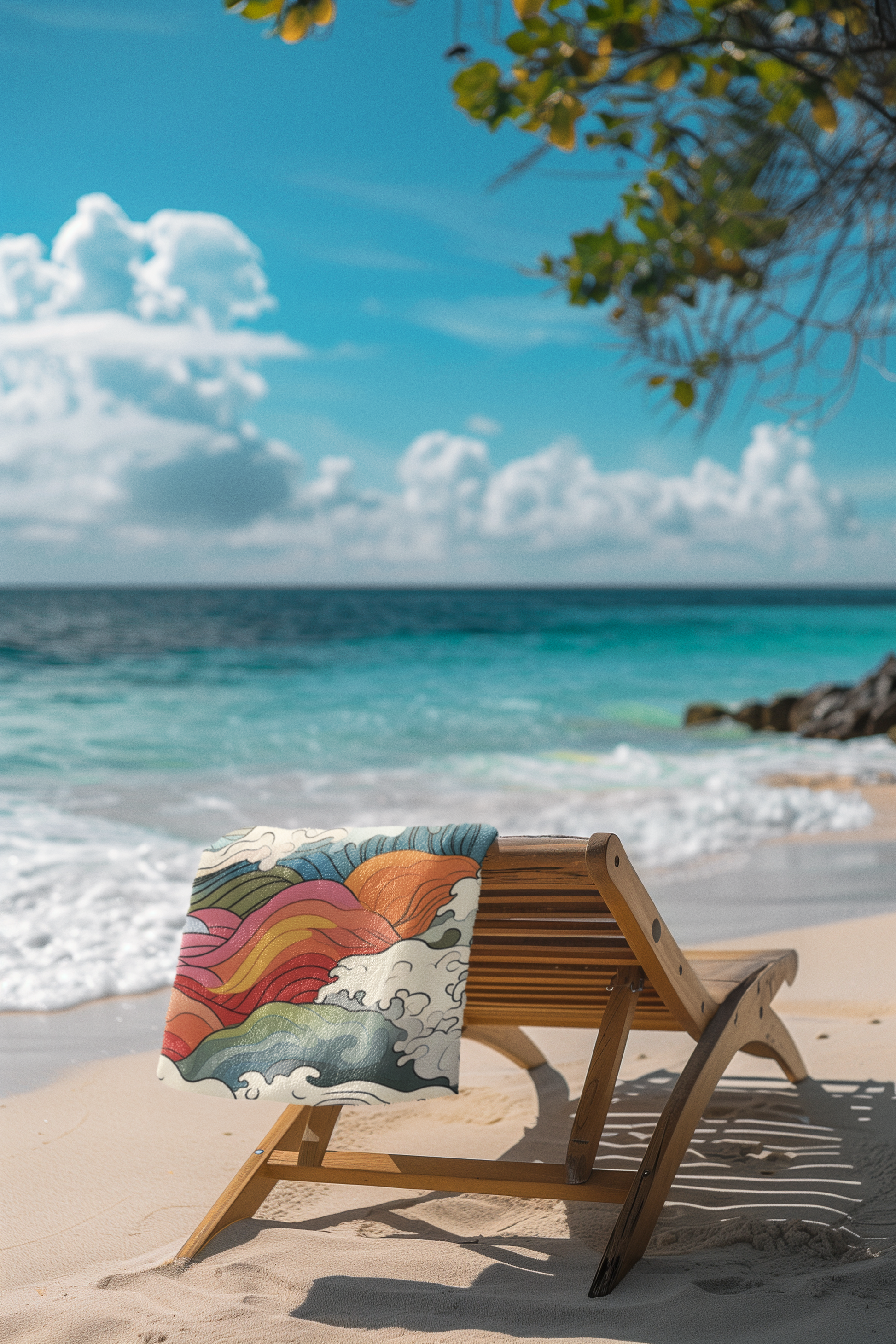 Dive into relaxation with our Beach Towel, designed with the stunning "Japanese Waves" pattern. This generously-sized towel is perfect for any beach or pool adventure. Made from plush cotton terry loops, it absorbs moisture efficiently, ensuring you stay dry and comfortable even after a swim. The soft texture is gentle against your skin, making it an ideal companion for lounging under the sun or wrapping up after a refreshing dip. Its vibrant design adds a touch of elegance to your beach day, while its durability guarantees long-lasting use. Lightweight and easy to carry, this towel is a must-have for sun seekers and water lovers alike. Elevate your outdoor experience with the perfect blend of style and functionality – the Beach Towel is ready to join you on your next adventure.