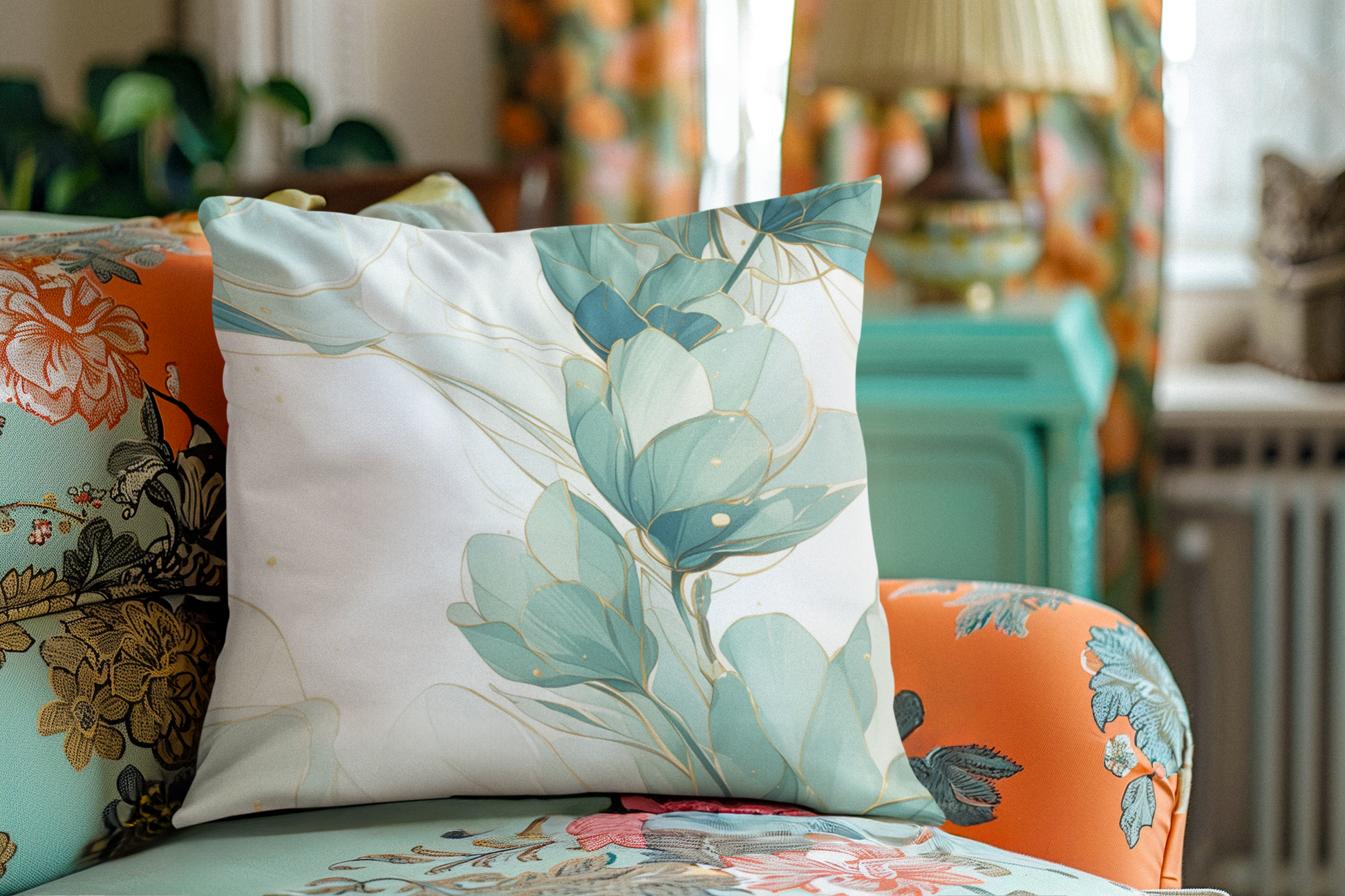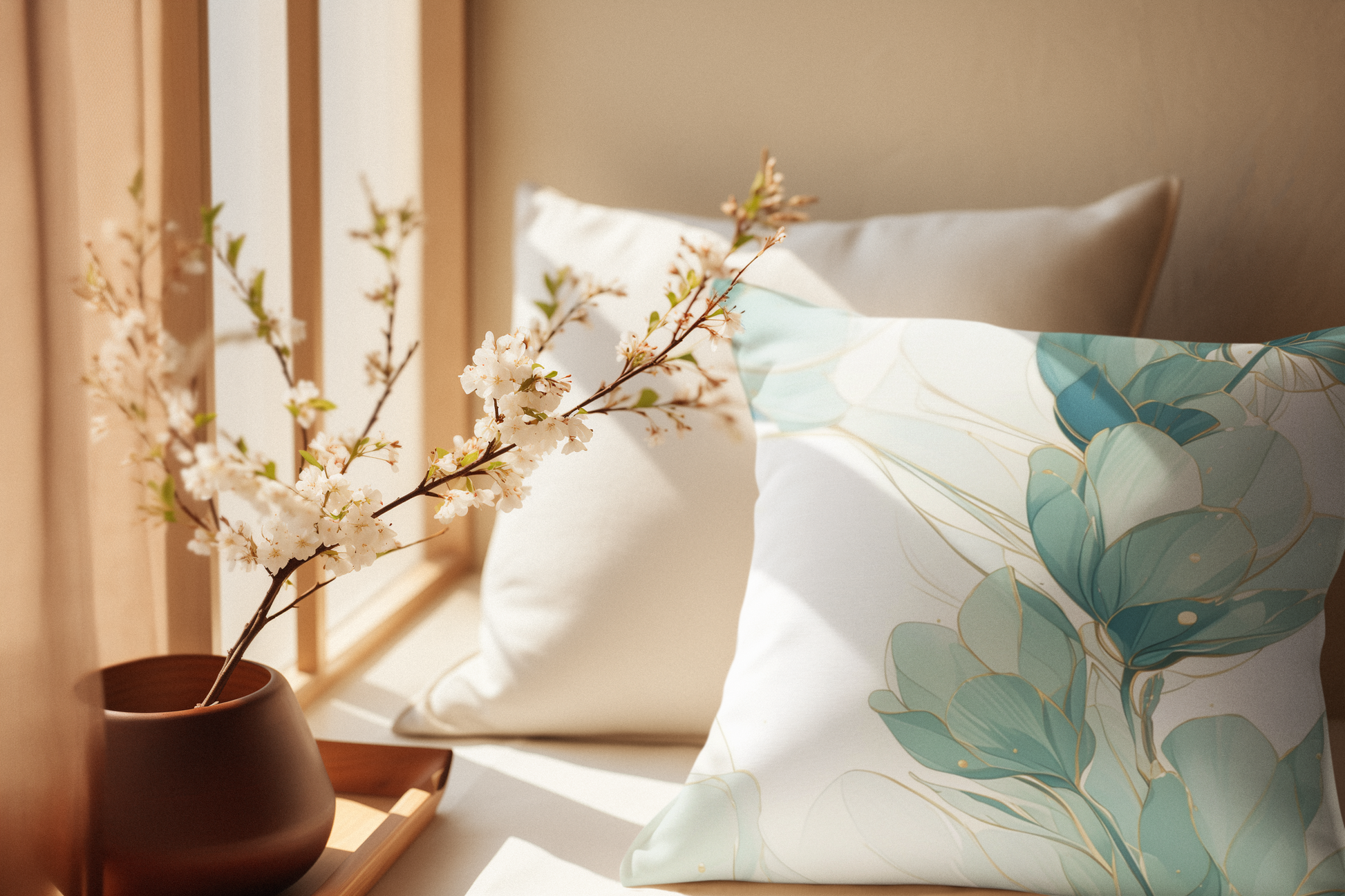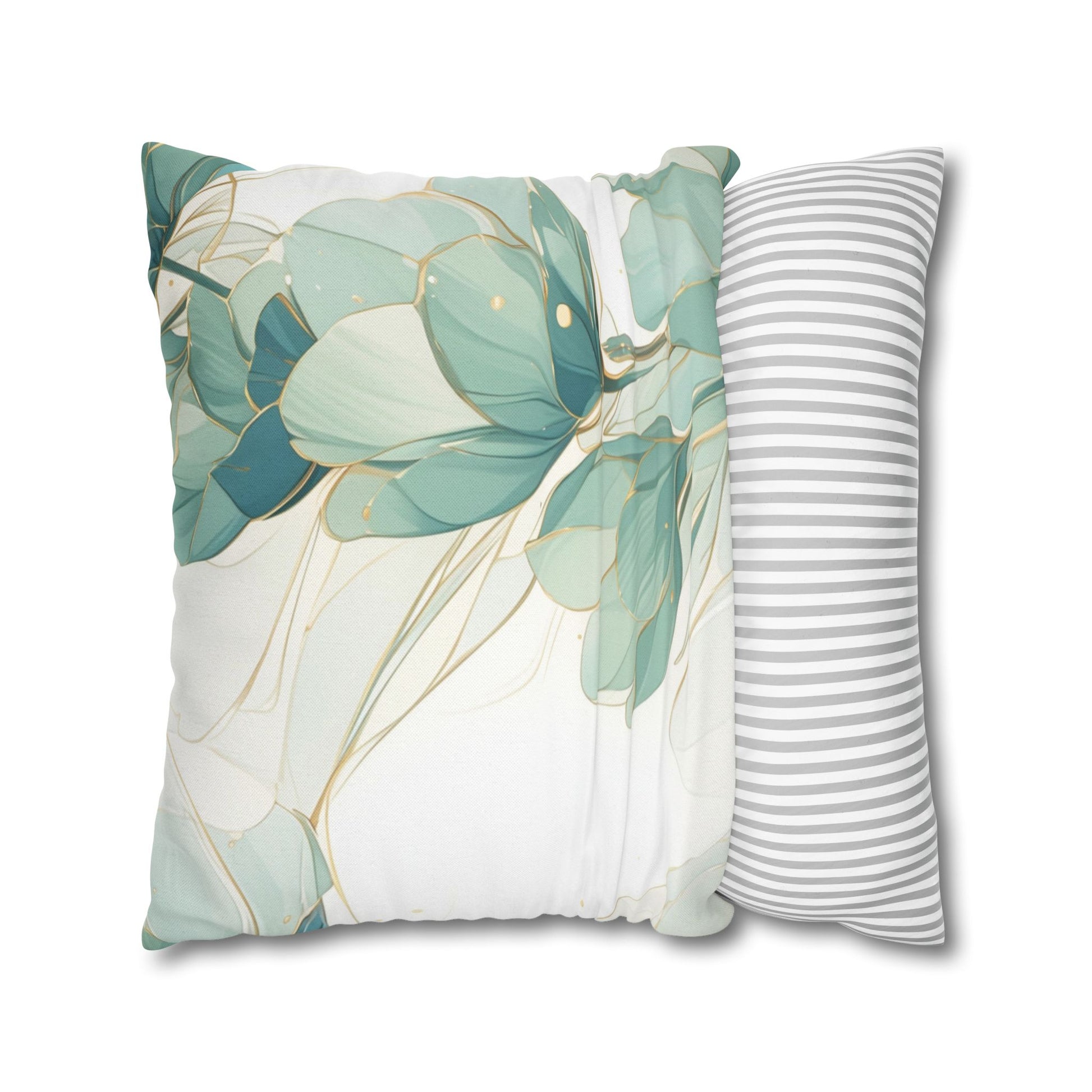 Soft, airy blooms in muted seafoam and sage sweep across this spun polyester square pillowcase, bringing a calm, botanical energy to living rooms and bedrooms. The double-sided print keeps the design vivid from every angle, while the concealed beige zipper keeps lines clean and distraction-free. Lightweight and wrinkle-resistant, the cover slips over your favorite insert and holds its shape through daily use. It adds a subtle, nature-inspired layer to cozy corners — a quiet finishing touch that invites slow mornings, gentle conversations, and restful afternoons.