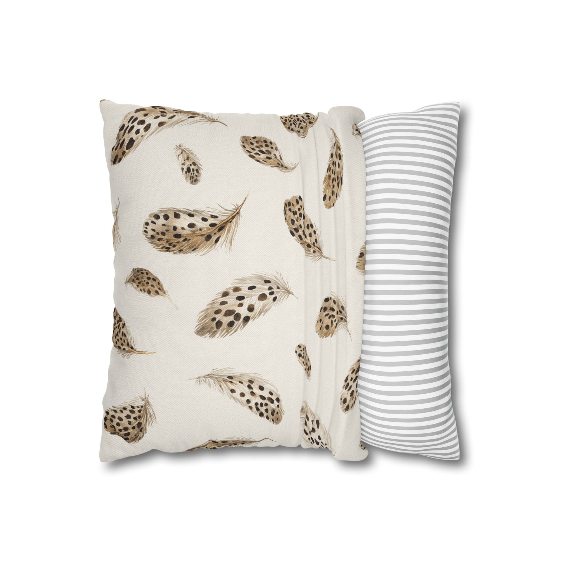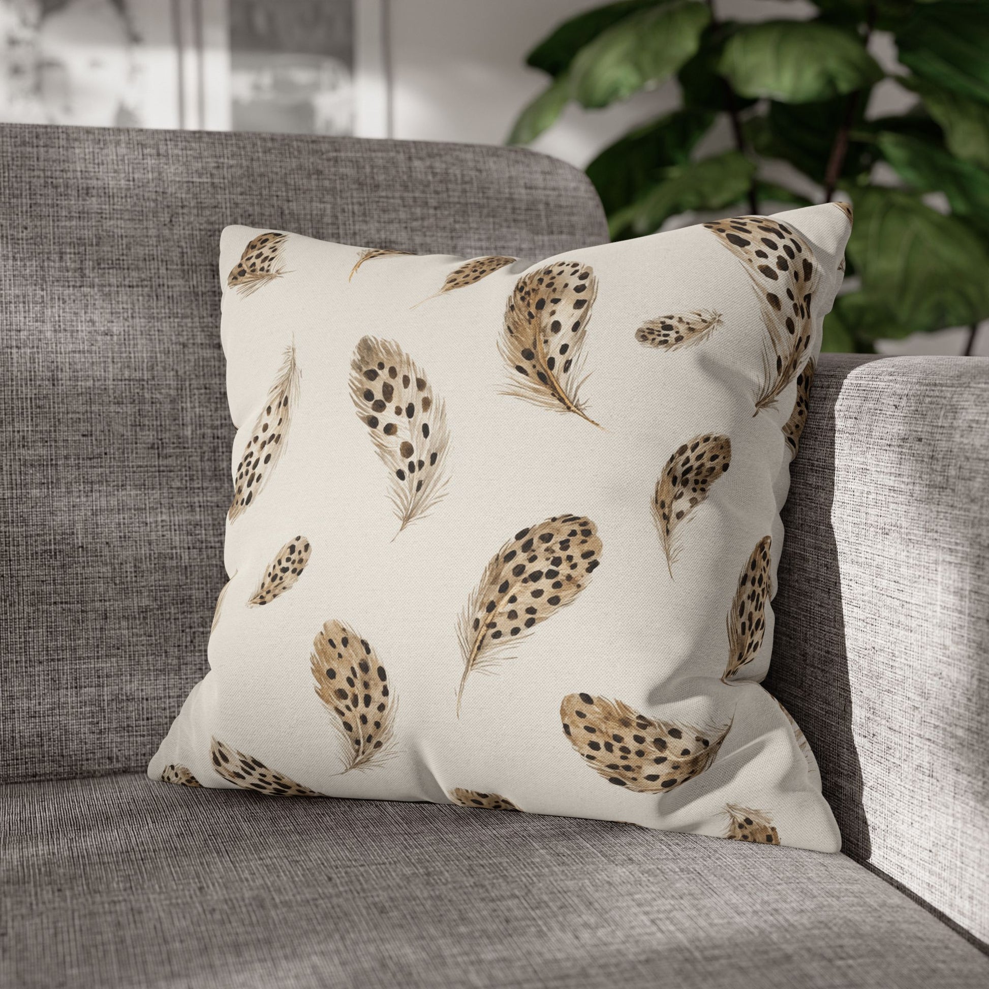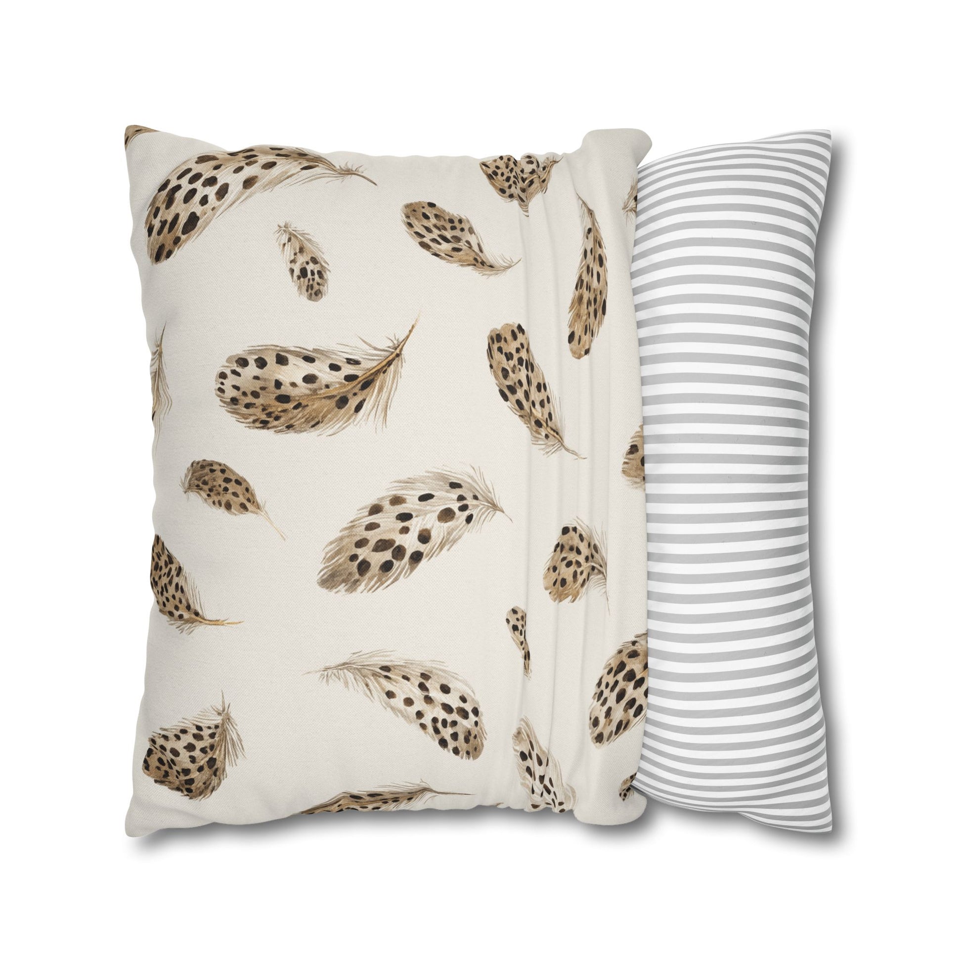 Warm, whisper-soft and quietly elegant — this square pillowcase brings a soft feather motif to your couch, reading chair, or bed. The neutral cream background and delicately speckled feathers create an airy, natural feeling that settles into calm spaces. The double-sided print keeps the design visible from every angle, while the concealed beige zipper blends in so the look stays uninterrupted. It slips on easily over a pillow insert and holds its shape thanks to the spun polyester weave that resists wrinkles. Use it to add a subtle layer of texture to a cozy corner or to freshen a neutral palette with gentle movement.