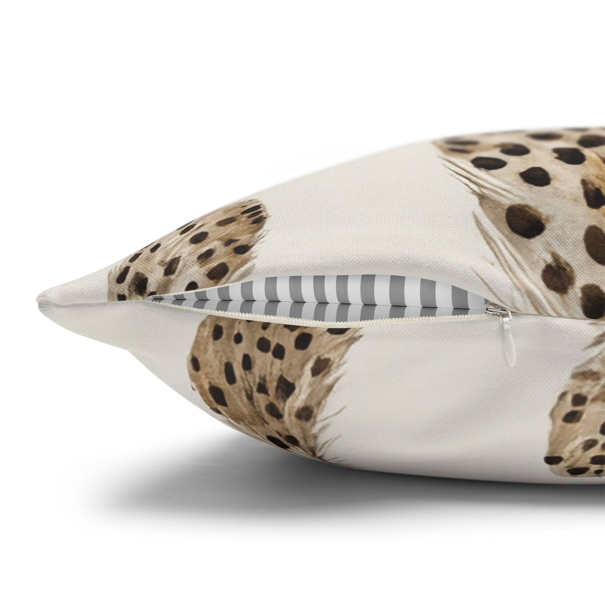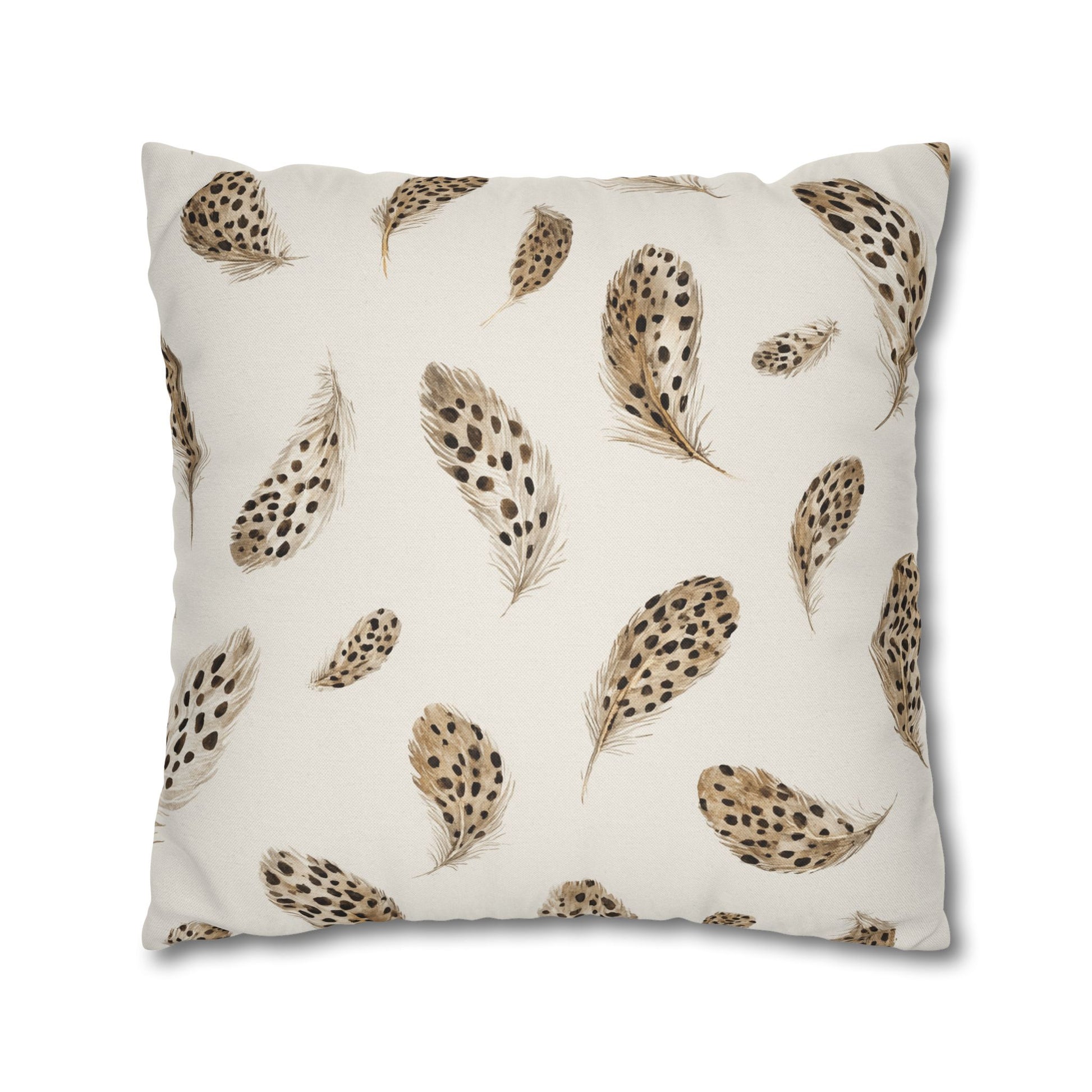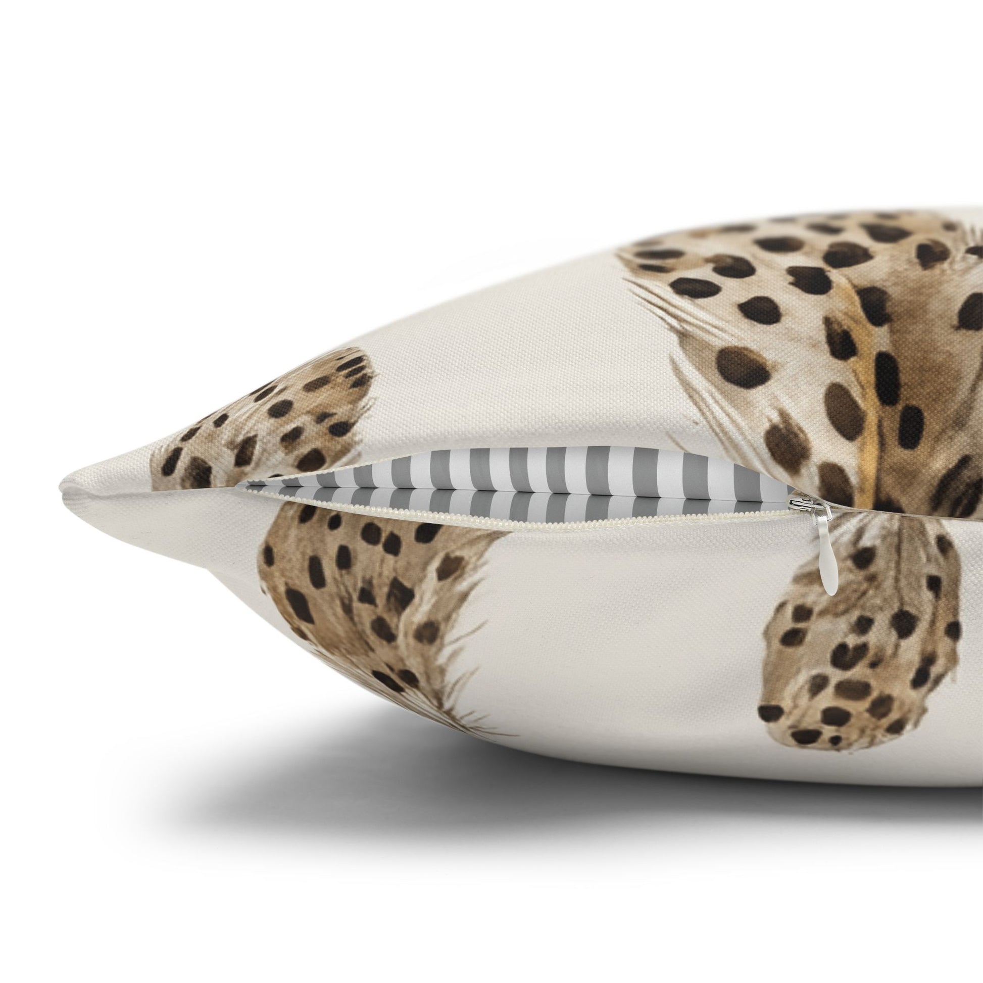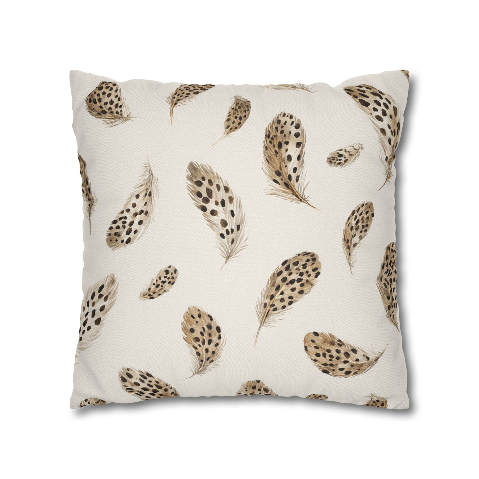 Warm, whisper-soft and quietly elegant — this square pillowcase brings a soft feather motif to your couch, reading chair, or bed. The neutral cream background and delicately speckled feathers create an airy, natural feeling that settles into calm spaces. The double-sided print keeps the design visible from every angle, while the concealed beige zipper blends in so the look stays uninterrupted. It slips on easily over a pillow insert and holds its shape thanks to the spun polyester weave that resists wrinkles. Use it to add a subtle layer of texture to a cozy corner or to freshen a neutral palette with gentle movement.