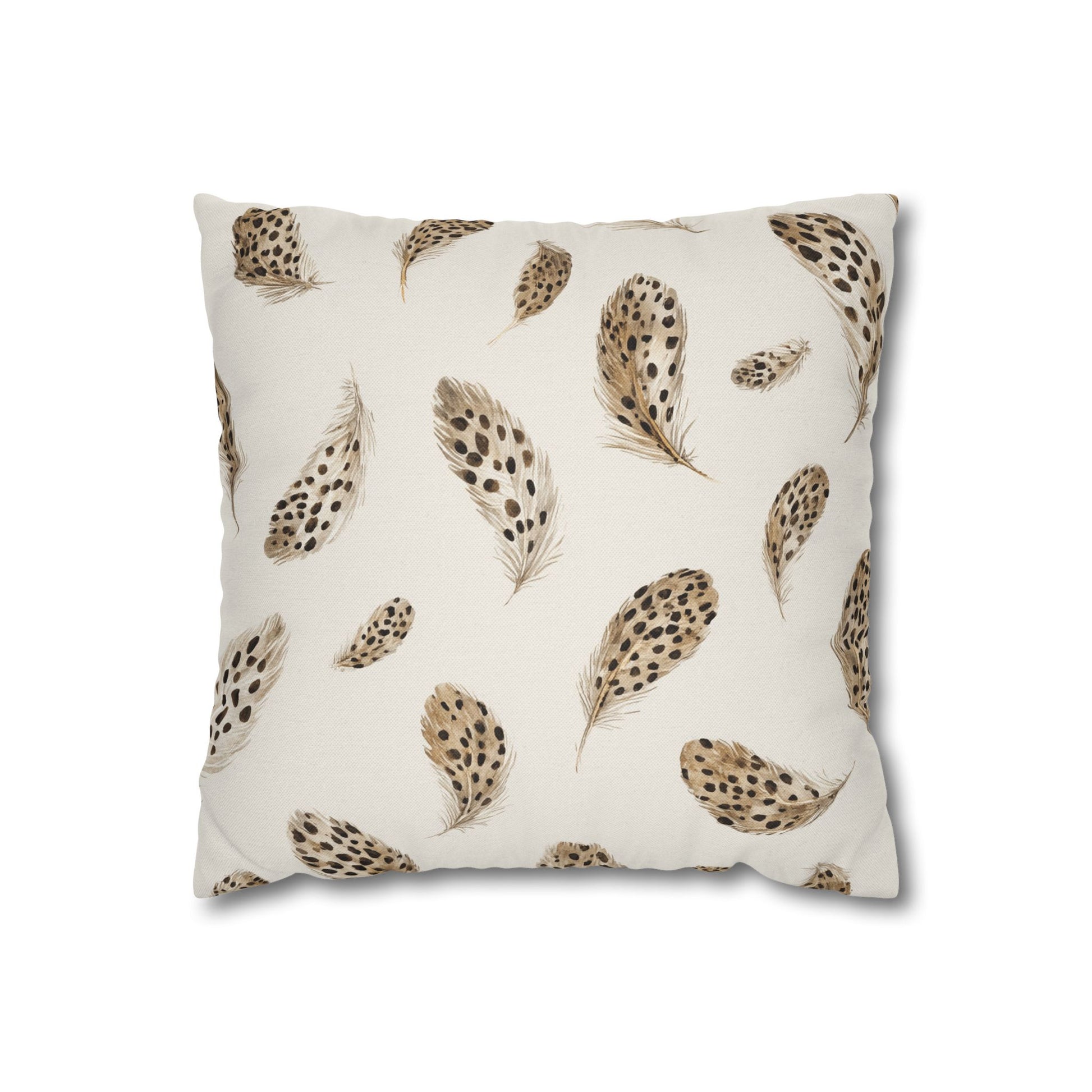 Feather Toss Decorative Pillowcase — Neutral Speckled Feathers Square Throw Pillow Cover