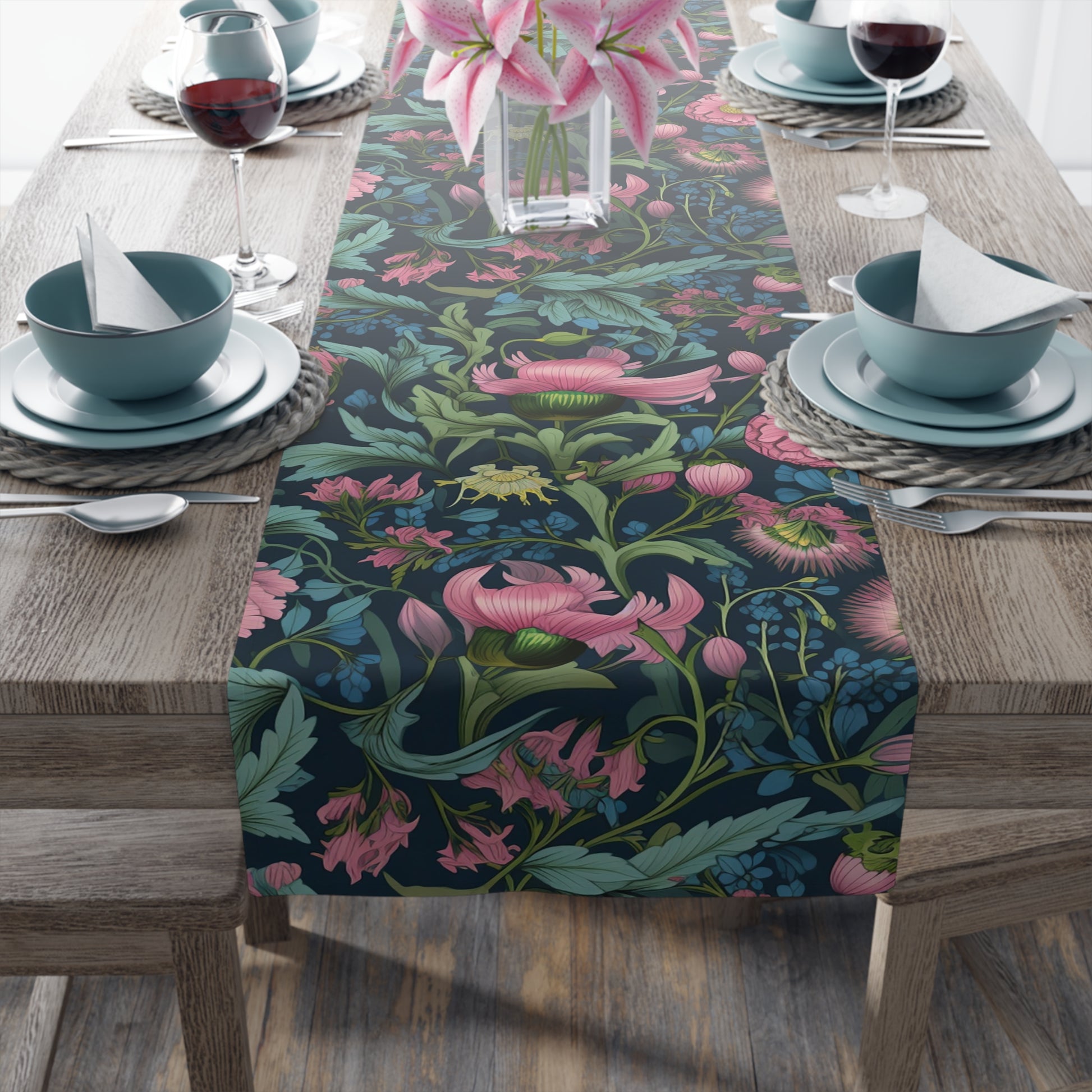 Floral Cotton-Poly Table Runner — Botanical Floral Table Runner