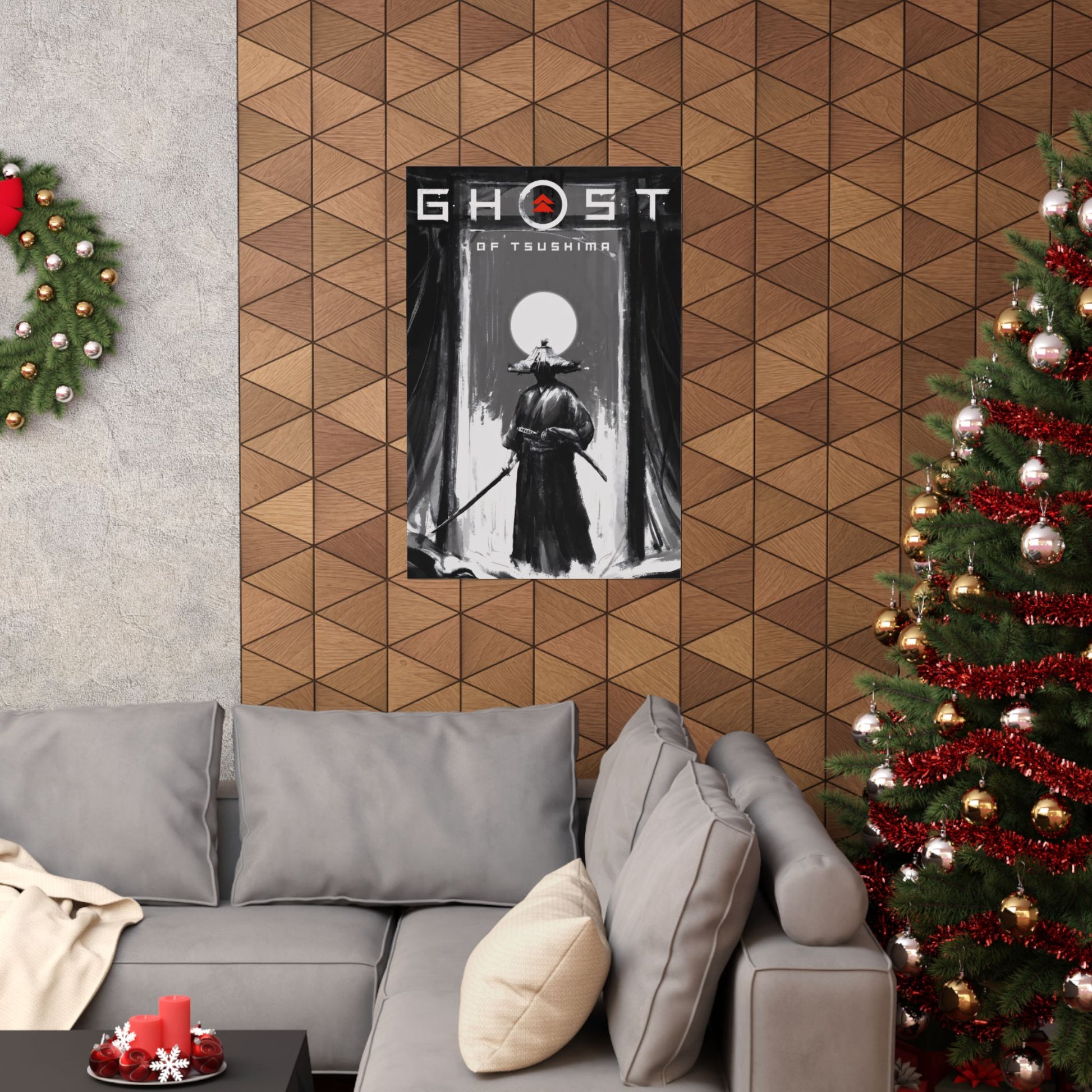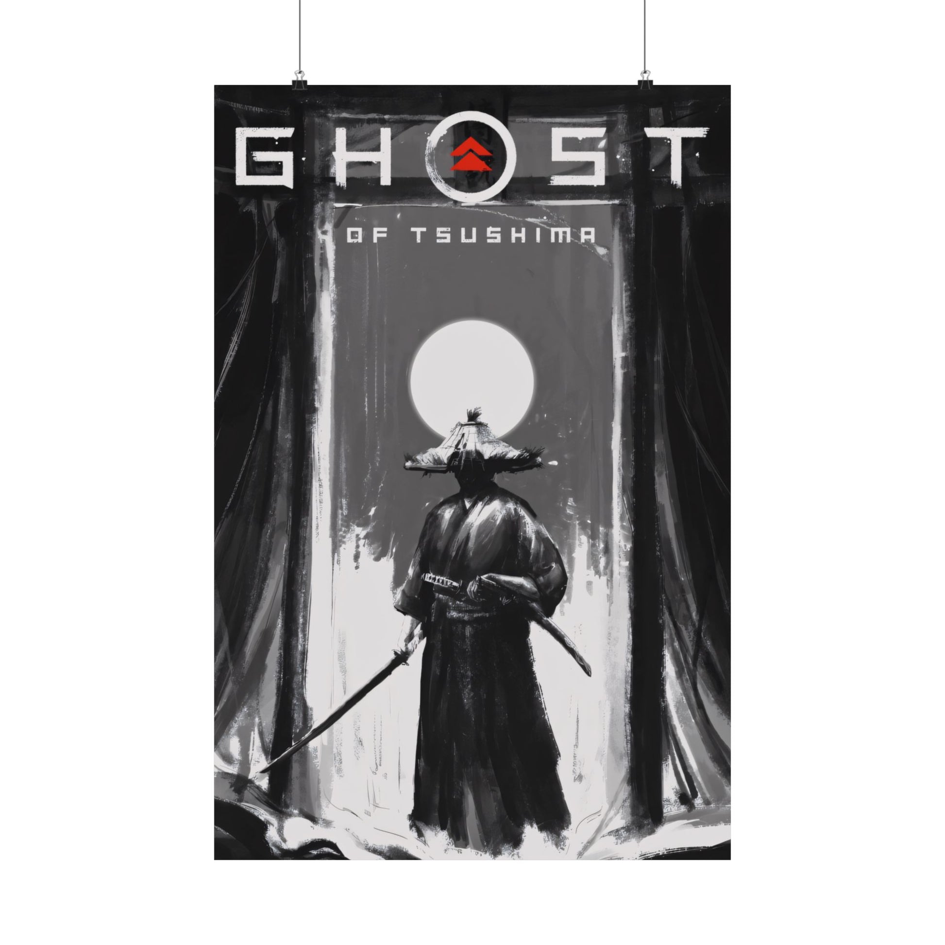 Ghost of Tsushima Matte Poster — Samurai Black & White Vertical Art Print