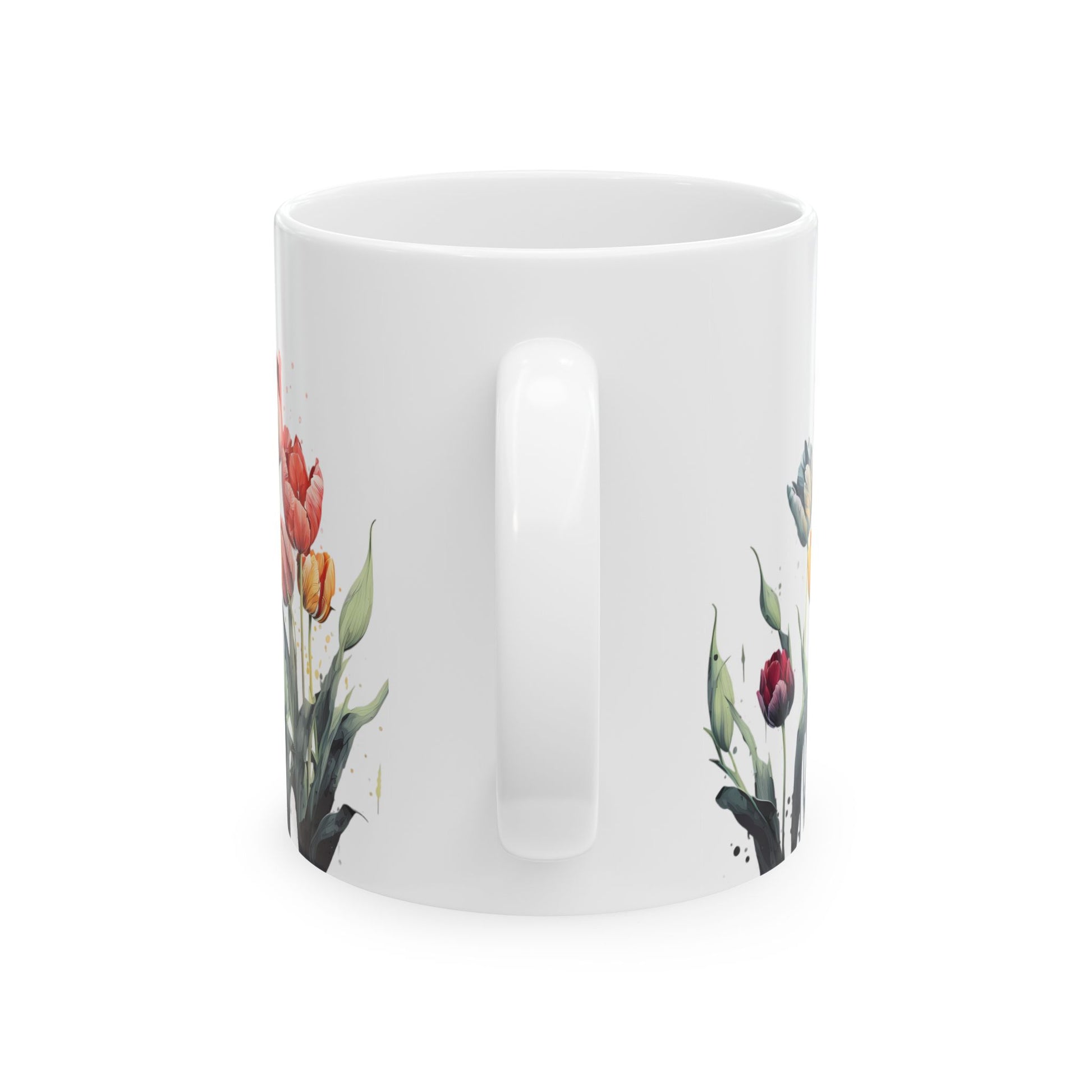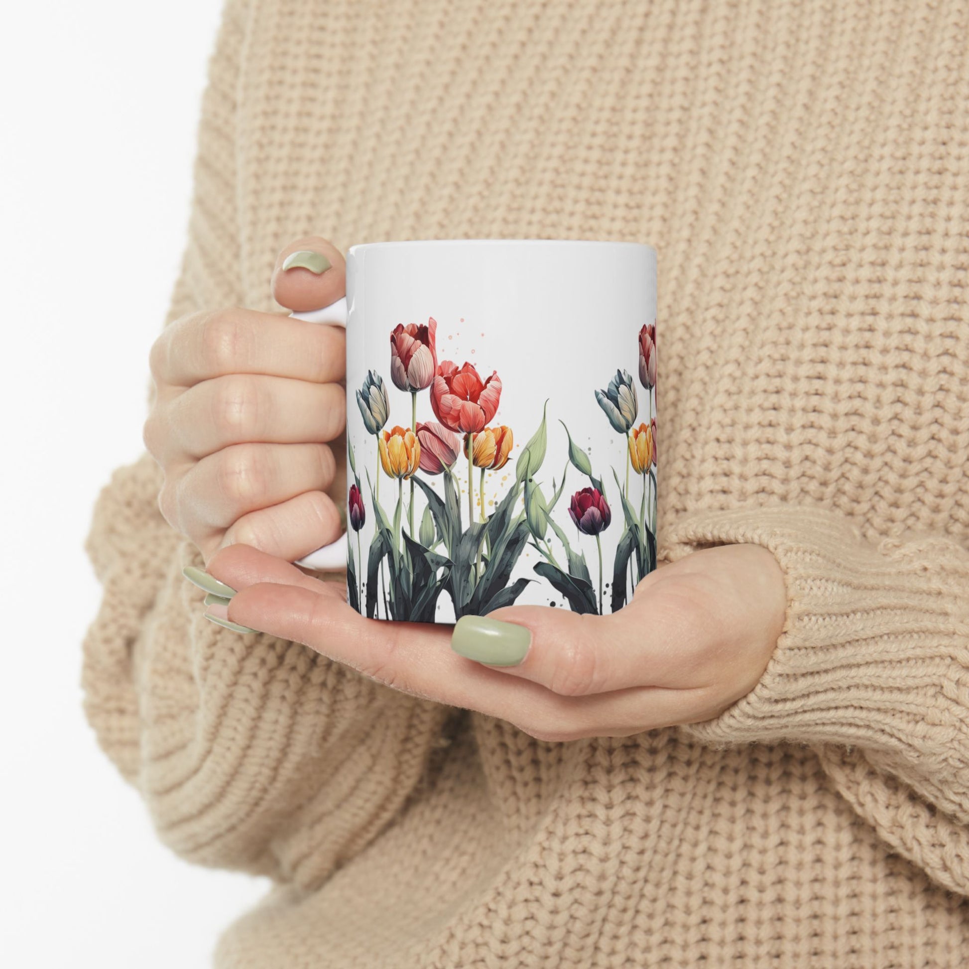 Tulip Garden Ceramic Mug — Floral Watercolor Coffee Cup (11oz & 15oz)