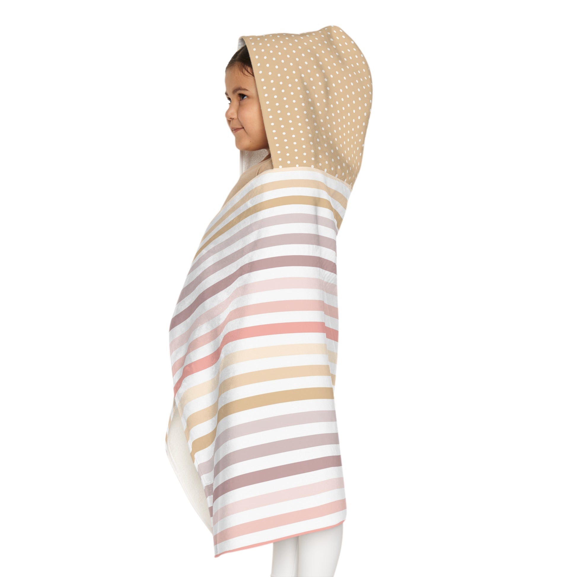 Youth Hooded Towel - Neutral Striped & Polka Dot Swim Cover-Up for Kids